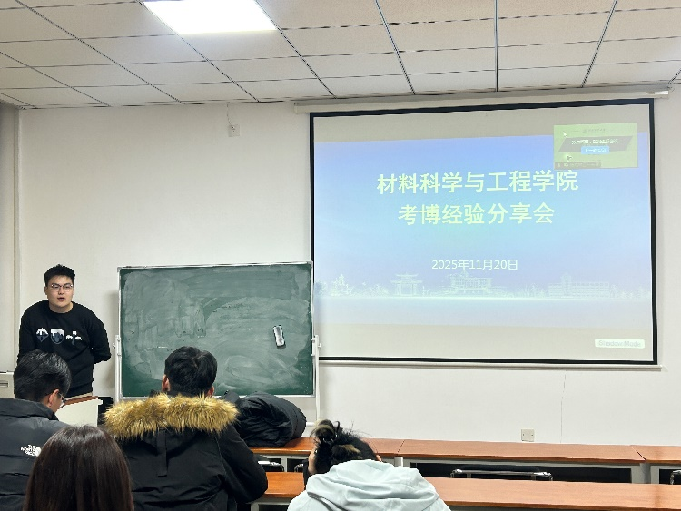 为切实提高研究生培养质量,营造良好的考博氛围,11月20日,材料科学与工程学院举办考博经验分享会。会议邀请我院2025届毕业研究生、西北工业大学材料工程专业在读博士生杨成林同学作分享交流,学院全体研究生参加。