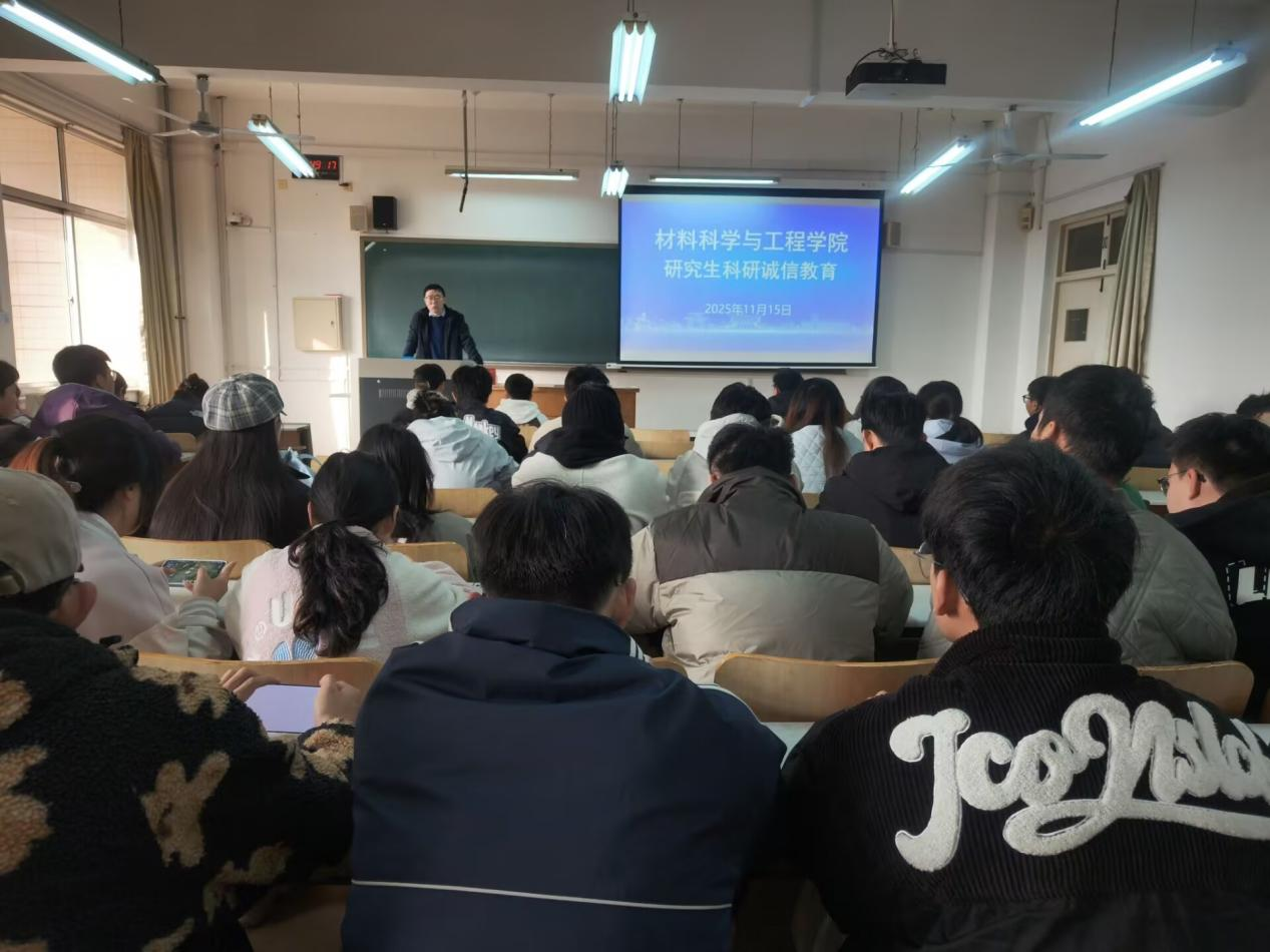 2025年11月15日,材料科学与工程学院开展了研究生科研诚信主题教育活动。活动由学院院长助理、研究生导师柏良久教授主持,材料科学与工程学院全体硕士研究生参加。