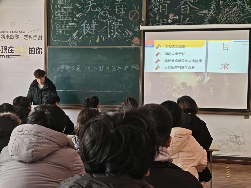活动分为专题宣讲和实战演练两个环节,学院学生积极参与。在消防知识宣讲环节,学生干部结合校园生活实际,借助多媒体课件,围绕校园火灾案例、日常火灾预防措施、灭火器规范使用方法以及火场逃生自救技巧等内容进行了系统讲解。同学们认真聆听、积极互动,进一步加深了对消防安全知识的理解与掌握。在消防演练环节,模拟教学楼发生火情,参演学生在工作人员引导下,用湿毛巾捂住口鼻,沿指定疏散路线快速、有序地从楼梯撤离至安全区域。整个演练过程紧张有序,学生反应迅速、配合默契,充分体现出良好的应急反应能力和集体协作意识。